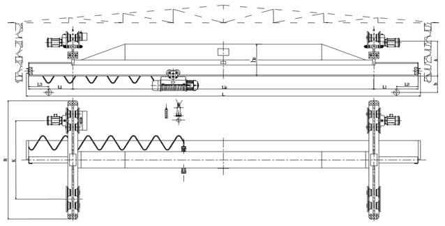 本產(chǎn)品為一般用途起重機(jī),多用于機(jī)械制造裝配、倉庫、山洞等場所。起重機(jī)主要由橋架(金屬結(jié)構(gòu))、電動(dòng)葫蘆、運(yùn)行結(jié)構(gòu)、電氣設(shè)備等四部分組成。