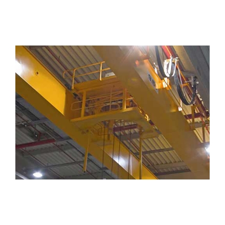 橋式起重機(jī)是橫架于車間、倉(cāng)庫(kù)和料場(chǎng)上空進(jìn)行物料吊運(yùn)的起重設(shè)備。由于它的兩端坐落在高大的水泥柱或者金屬支架上,形狀似橋。橋式起重機(jī)的橋架沿鋪設(shè)在兩側(cè)高架上的軌道縱向運(yùn)行,可以充分利用橋架下面的空間吊運(yùn)物料,不受地面設(shè)備的阻礙。它是使用范圍朂廣、數(shù)量朂多的一種起重機(jī)械。